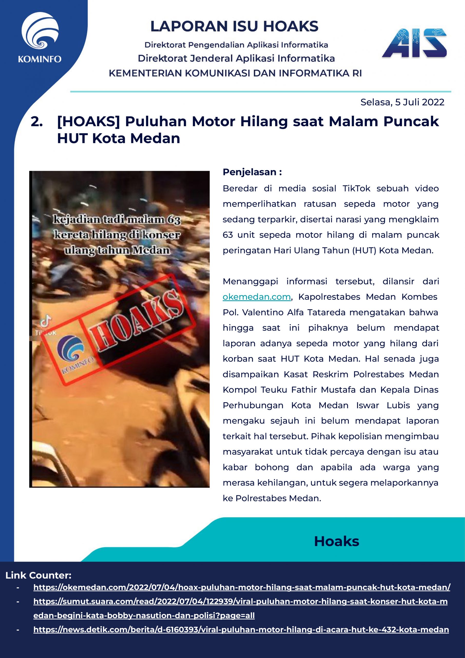 [Hoaks] Puluhan Motor Hilang Saat Malam Puncak HUT Kota Medan