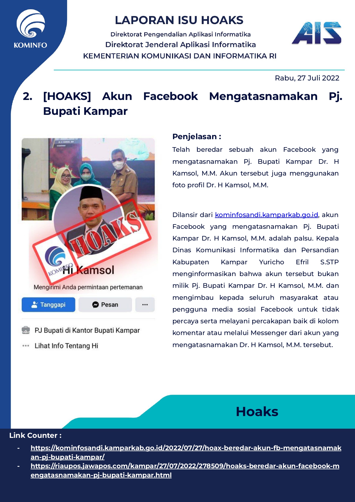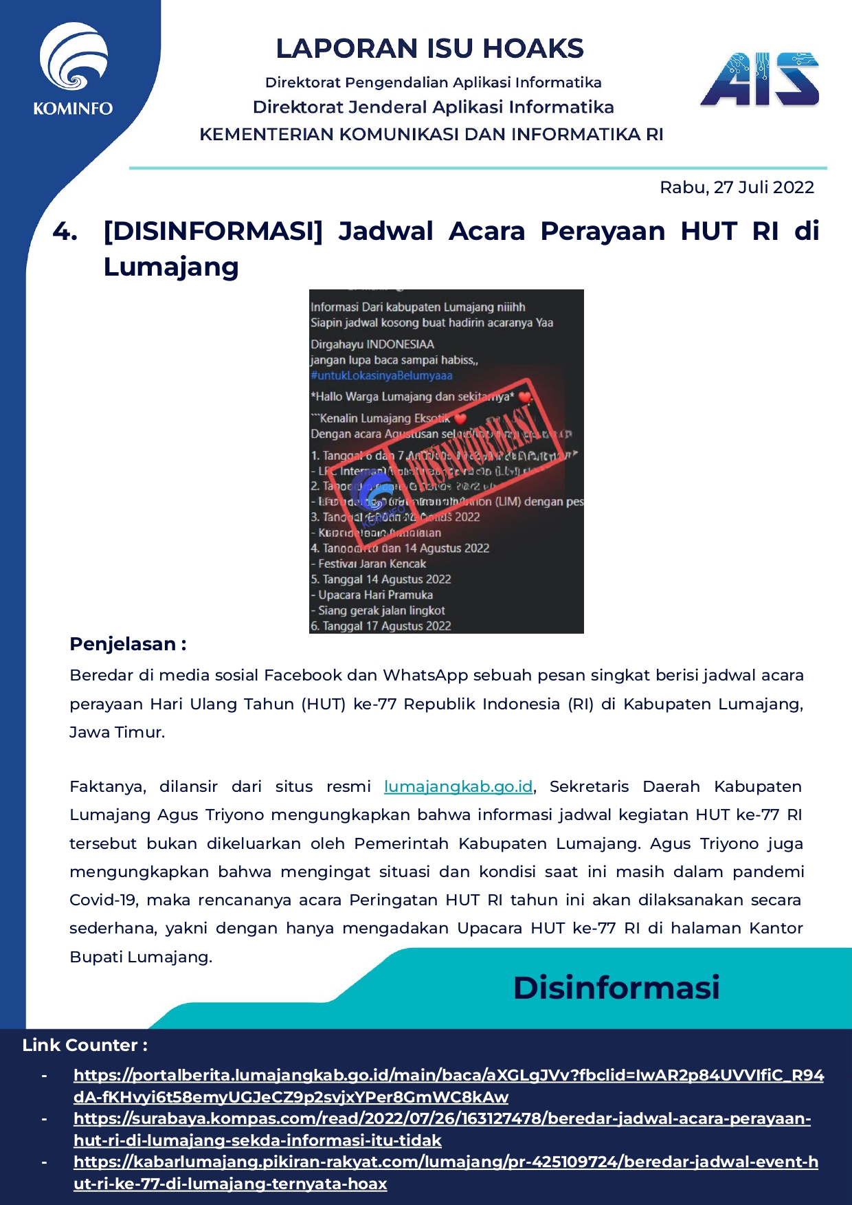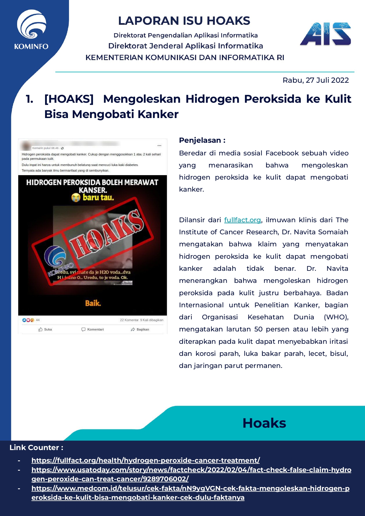 Rilis Hoax Harian Tanggal 27 Juli 2022