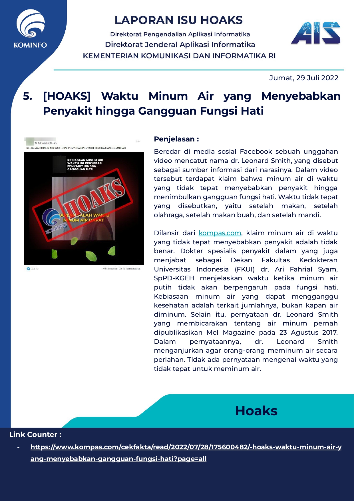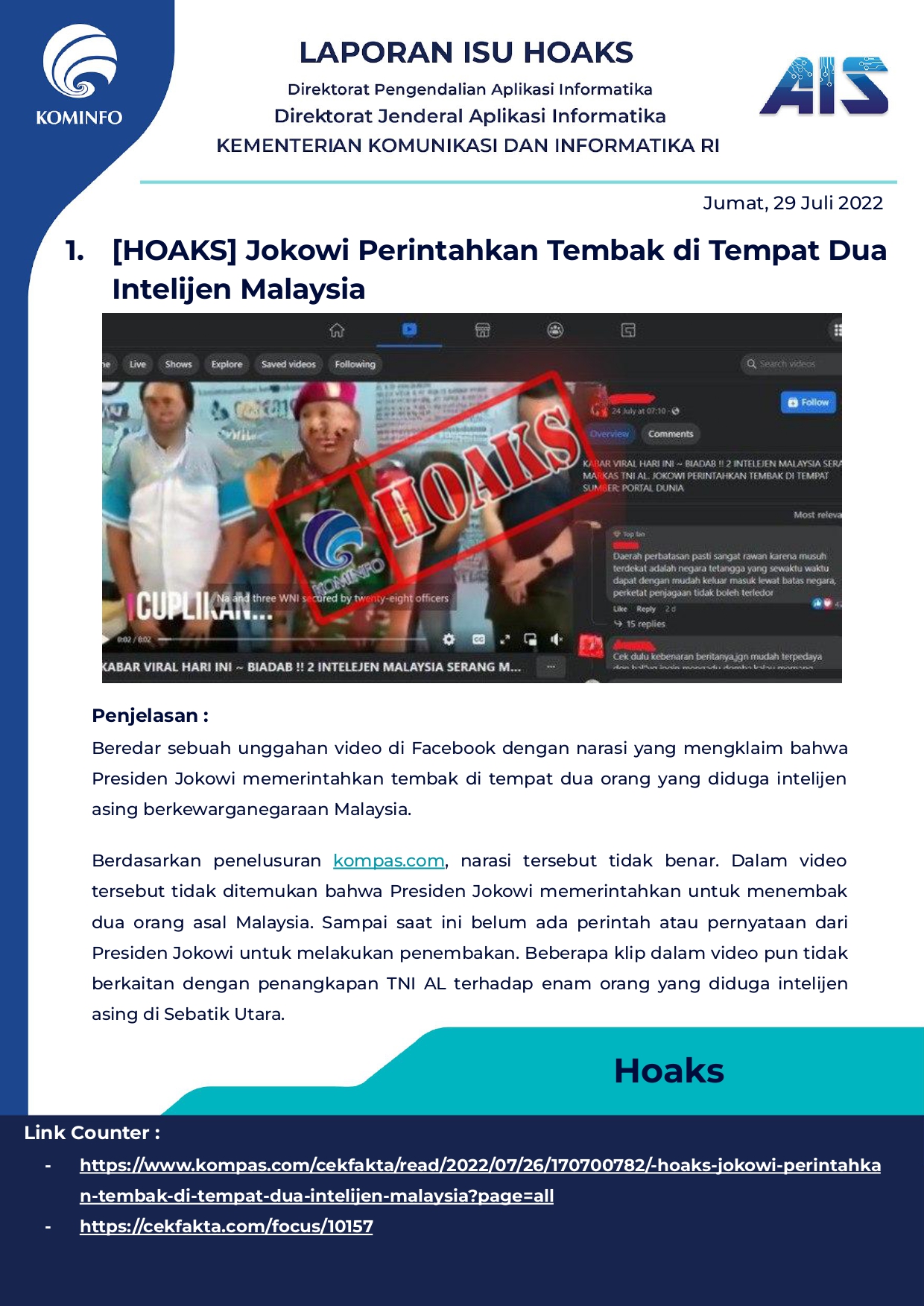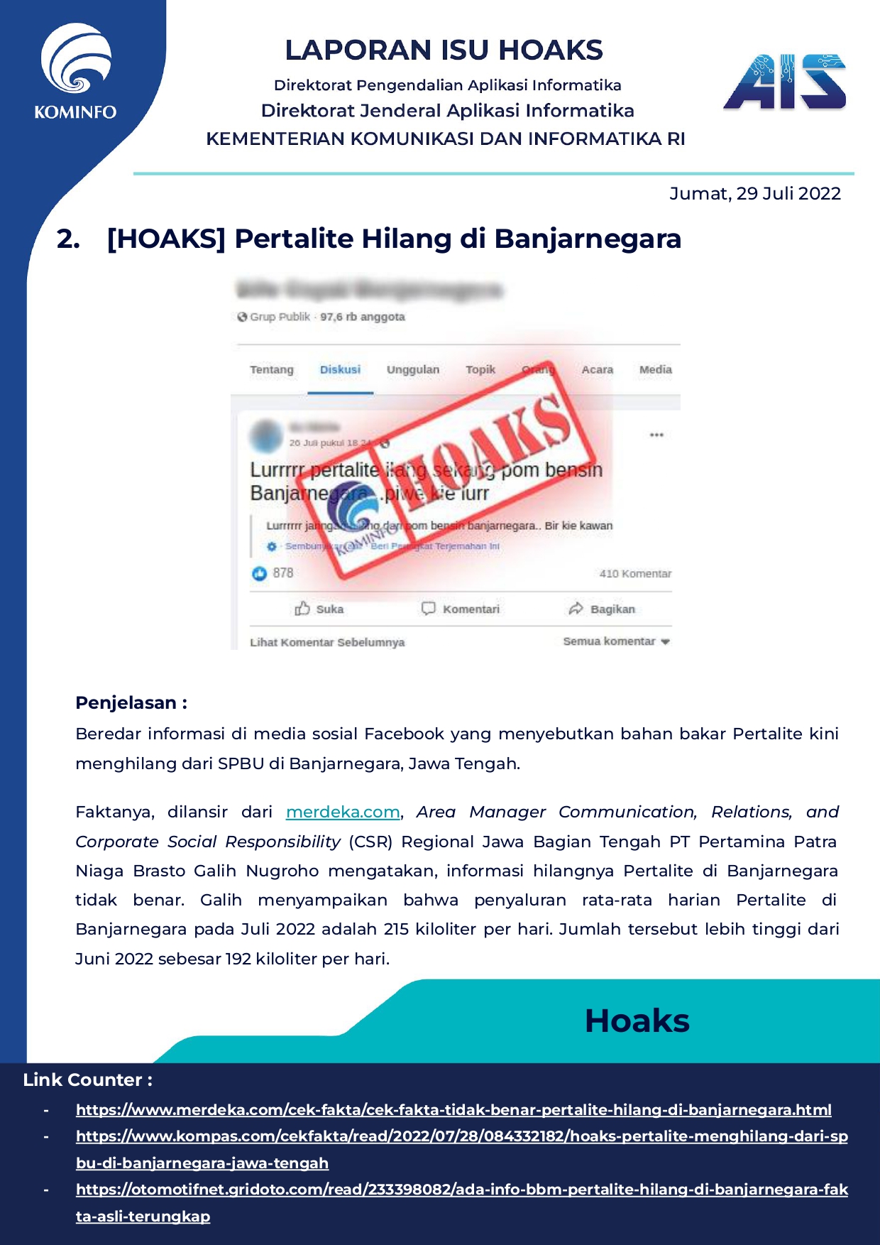 Rilis Harian Hoax Tanggal 29 Juli 2022