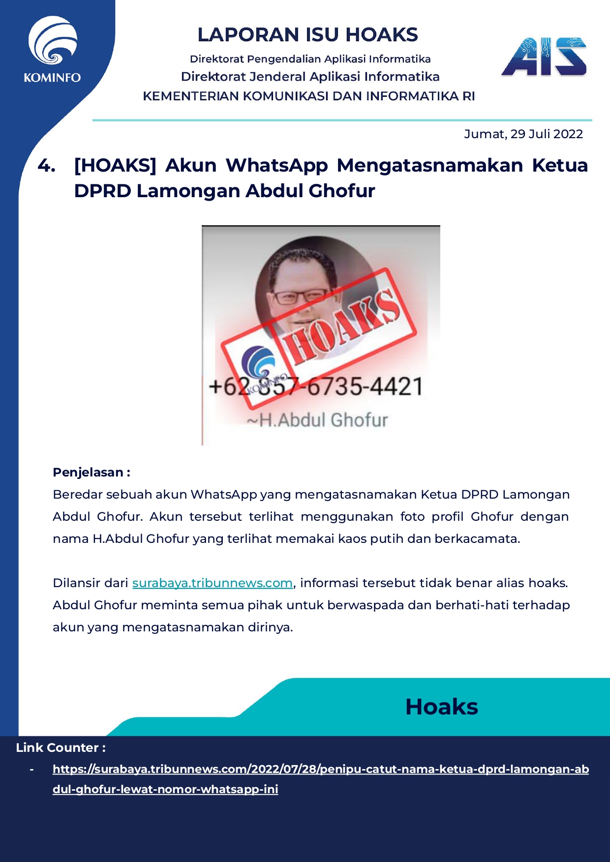Rilis Hoax Harian Tanggal 30 Juli 2022