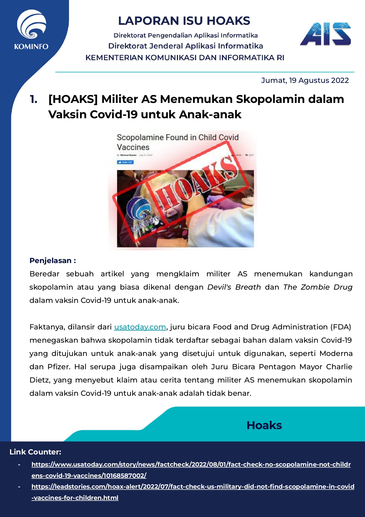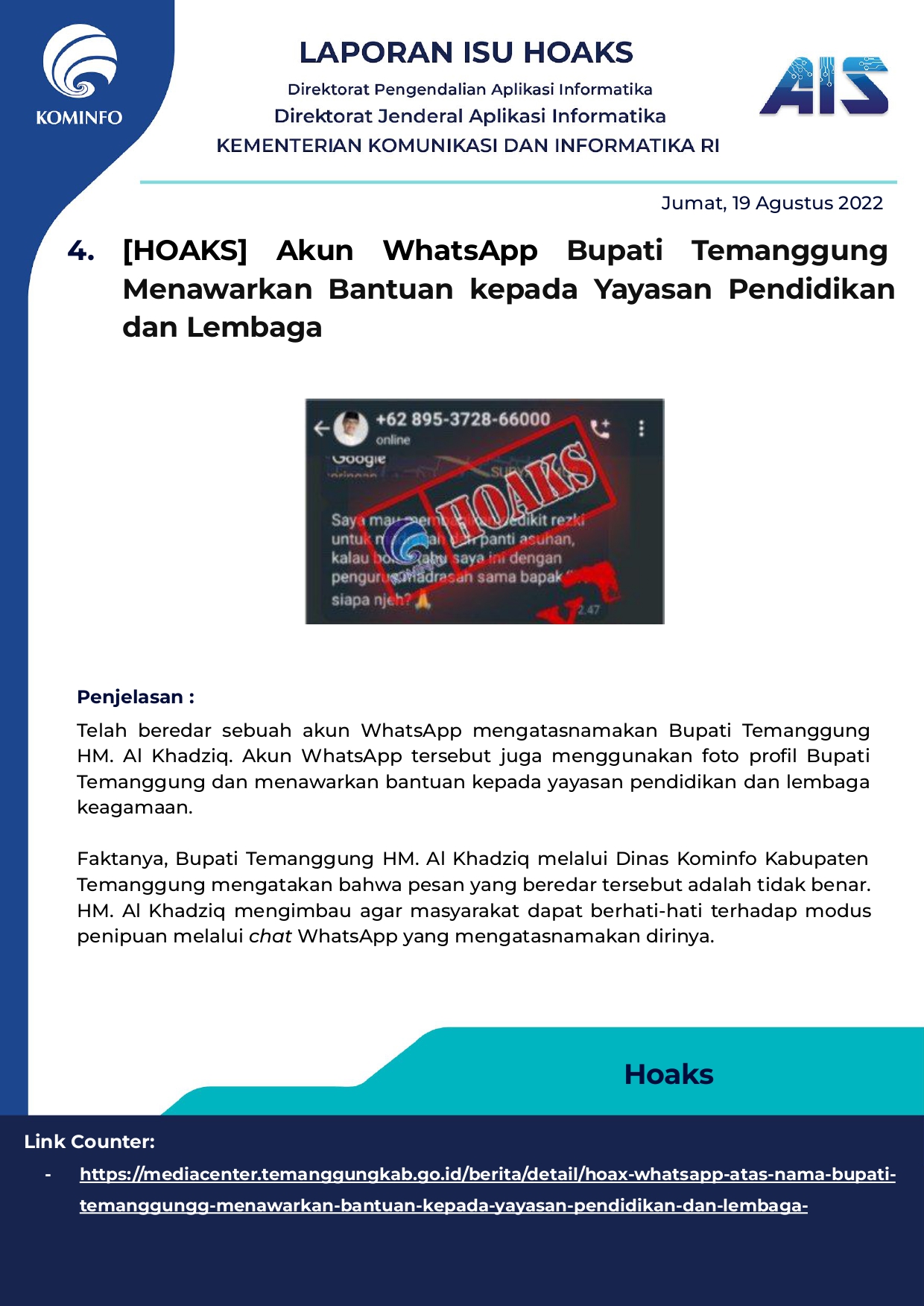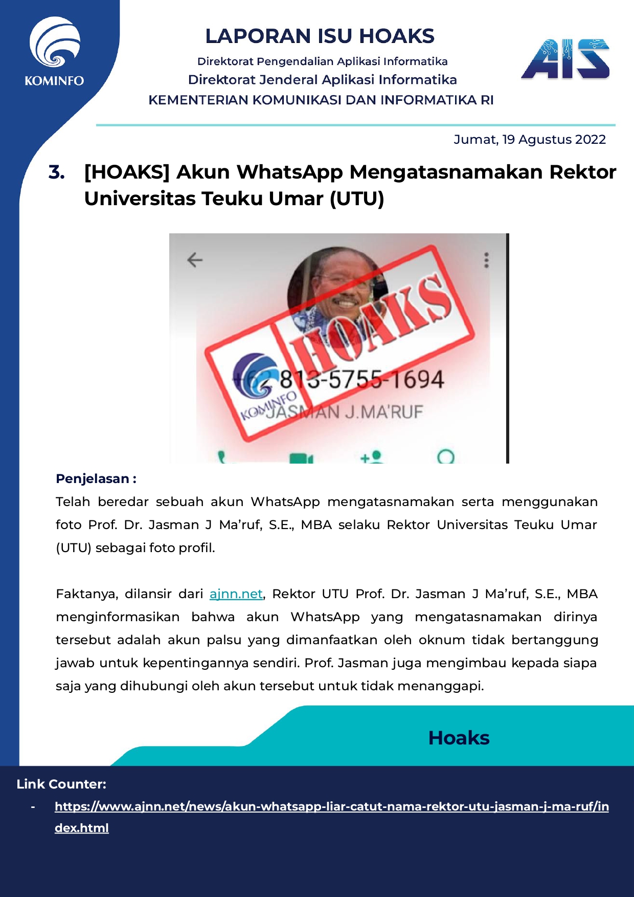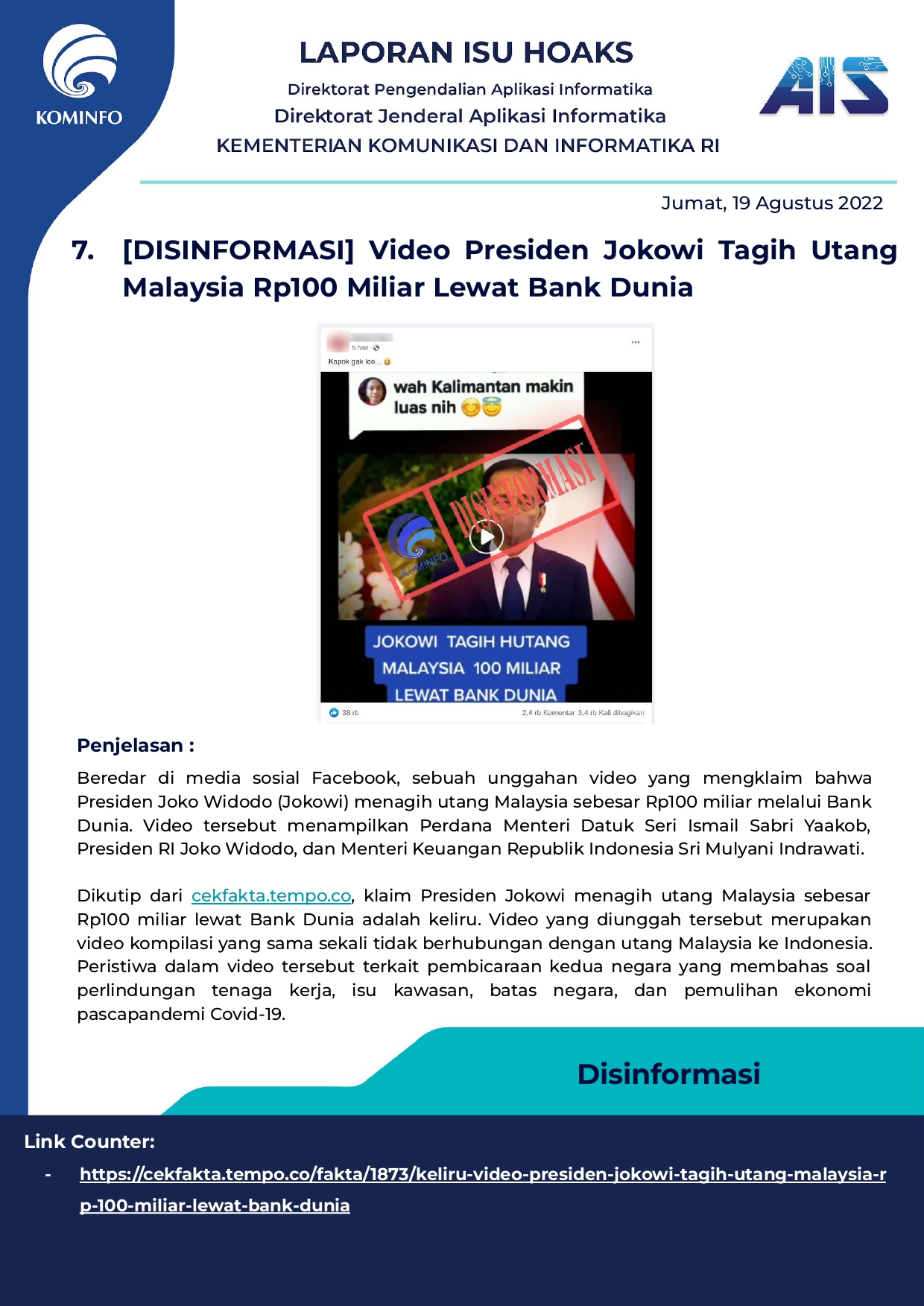 Rilis Hoax Harian Tanggal 19 Agustus 2022
